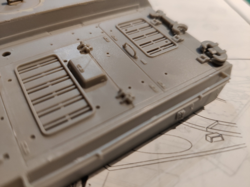 I spent a couple of extra minutes by gluing all the hubcaps to the sixteen roadwheels. This way the model was ready for my next step, whether it was a fixing or a priming session.