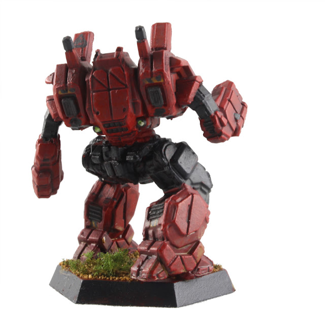 During the Clan invasion Morgan Kell didn't seem to spend that much time on the battlefield (excluding the Battle of Luthien, of course) as the stories concentrated more on the next generation. Somehow I had this idea that such a big shot, mister-sir colonel was mostly operating a propaganda-worthy 'Mech. Pretty often the artwork of 'spheroid 'Mechs had lots of personalizations like graffiti, victory markings, catchphrases and whatnot. In my opinion those didn't suit this character, which is why I painted this mini as a "pure" Kell Hound.